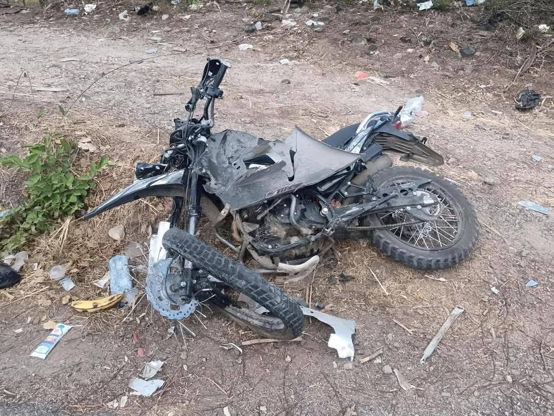 En el lugar quedó la motocicleta severamente dañada, donde se conducían a pocos metros de uno de los cuerpos.