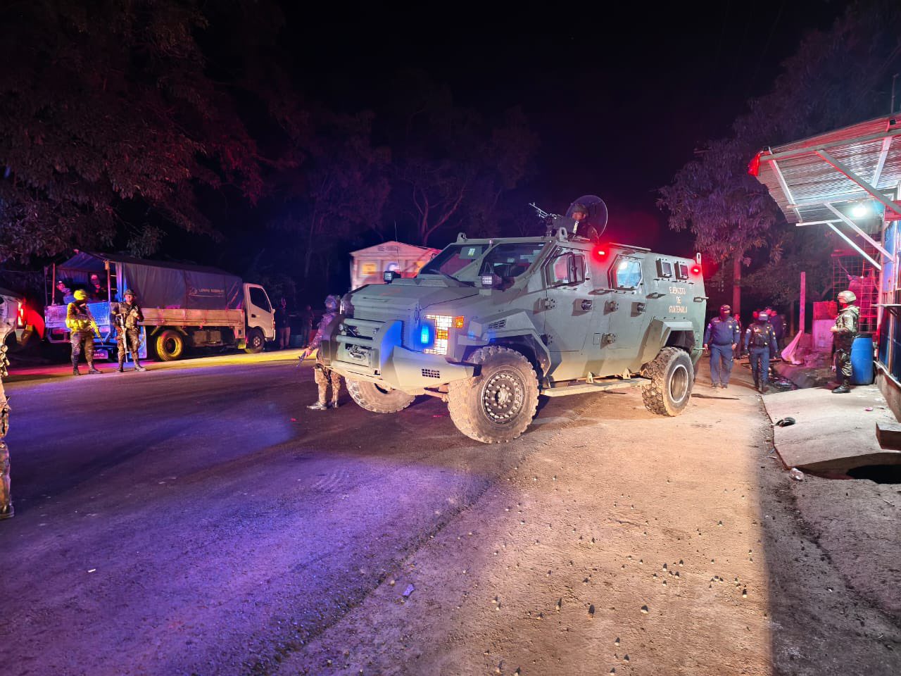 Efectivos del Ejercito de Guatemala desde ayer en la noche mantiene rodeada la cárcel Renovación 1 en Escuintla como una medida de seguridad debido a que el motín provocó que el penal se quedara sin energía eléctrica dejandola vulnerable ante cualquier fuga