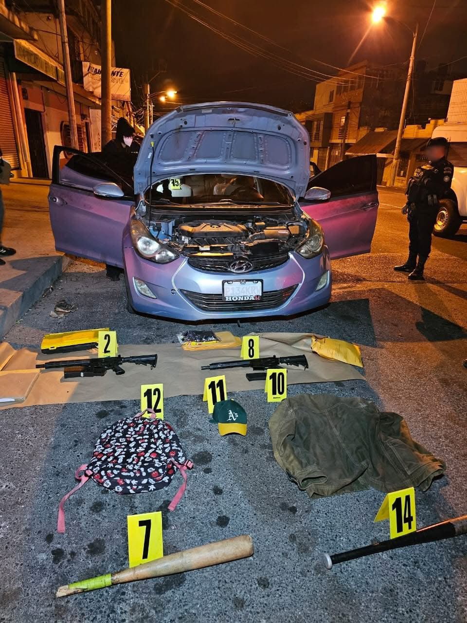 En una pronta acción policial y gracias a denuncias ciudadanas, agentes de la Policía Nacional Civil de comisaría 11 que realizaban recorridos de seguridad en la 20 calle y avenida Elena, zona 3 se localizan el automóvil, marca Hyundai, color gris, P-134KRW en el cual se observaban dos fusiles, por lo que inmediatamente se coordinó con fiscales para la diligencia respectiva.