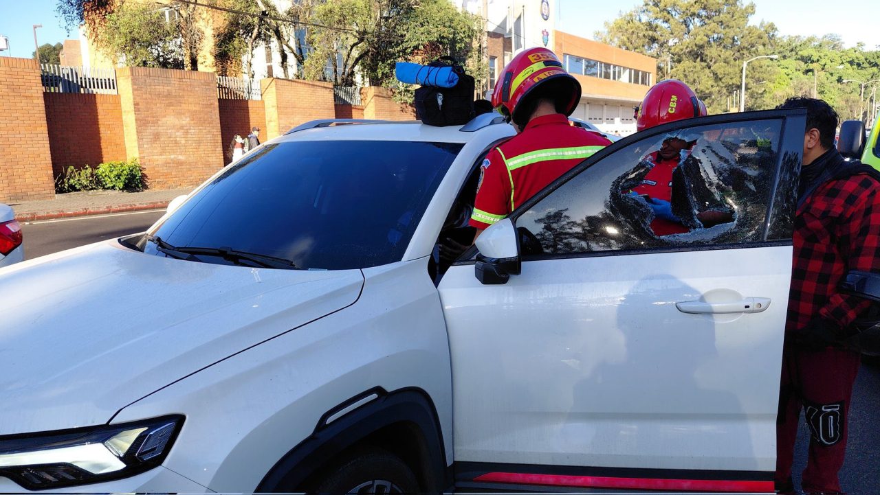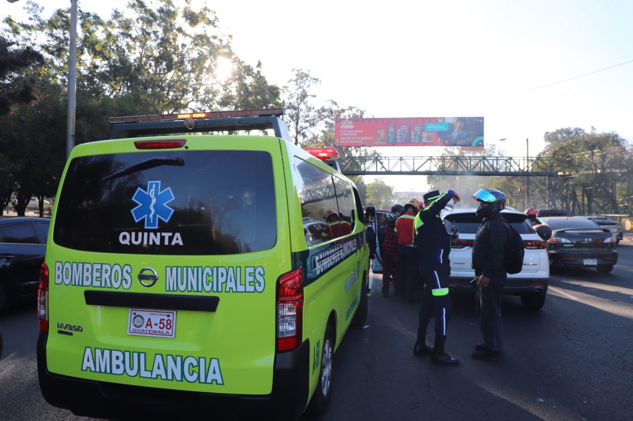 Los bomberos municipales le brindaron los primeros auxilios a una mujer, piloto de un vehículo que fue víctima de un hecho armado para asaltarla en Bulevar Liberación y 11 avenida de la zona 12 capitalina.