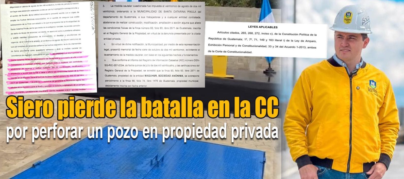 El caso del pozo de agua de aldea el Pueblito construido en propiedad privada por el alcalde de Santa Catarina Pinula y presidente de la Asociación Nacional de Municipalidades, ANAM, Sebastián Siero, tomó un nuevo giro con una resolución de la Corte de Constitucionalidad CC, que podría llevar a juicio no solo al alcalde Siero si no a todo su Concejo Municipal que avaló esta acción ilegal.