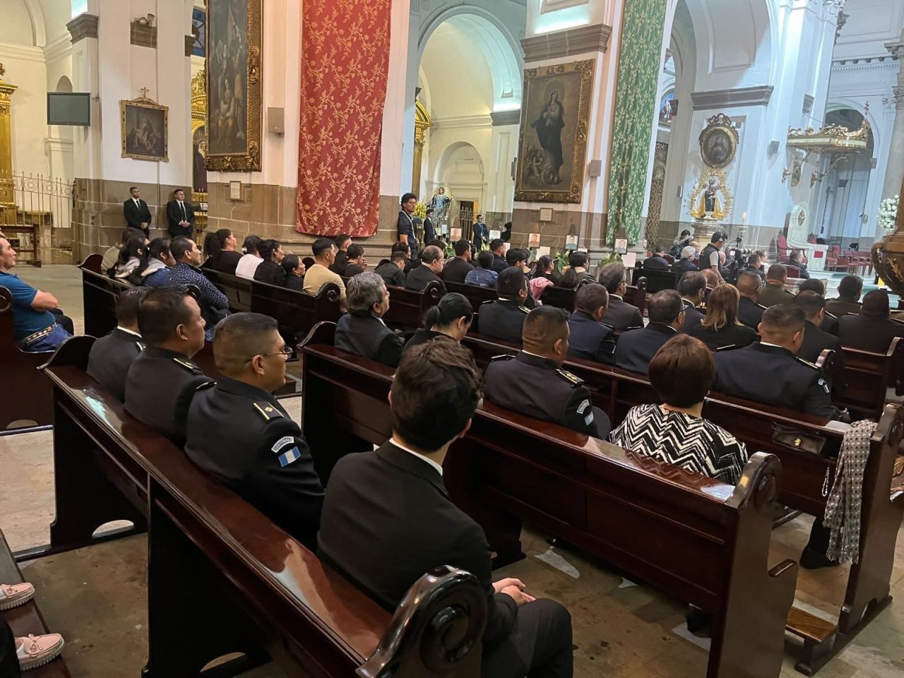 En dicha actividad se encuentran presentes la vicepresidenta Karin Herrera, el Ministro de Gobernación, Marco Antonio Villeda, viceministros, el Director General, David Custodio Boteo, el Director General Adjunto y la cúpula policial, así como personal del Ejército de Guatemala y familiares de los caídos en cumplimiento del deber y personal policial.