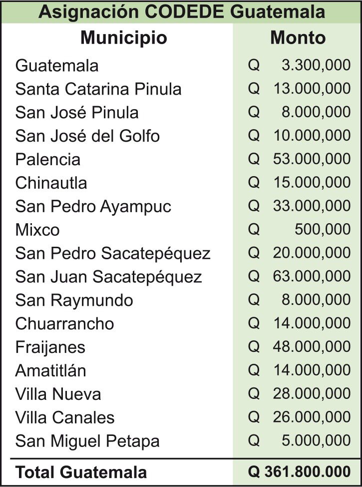 Mientras tanto en Chimaltenango a quien solo se le dio medio millón de quetzales fue a Tecpán, que dirige Flaviano Salomón, según los analistas políticos esto se dio por que los alcaldes no se doblegaron a los diputados.