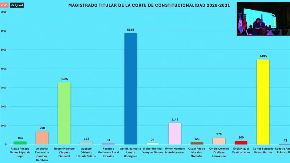 Al finalizar el conteo en las elecciones del Colegio de Abogados , Astrid Lemus y Estuardo Gálvez son los candidatos a magistrado titular de la Corte de Constitucionalidad CC que pasan a la segunda vuelta electoral del CANG.