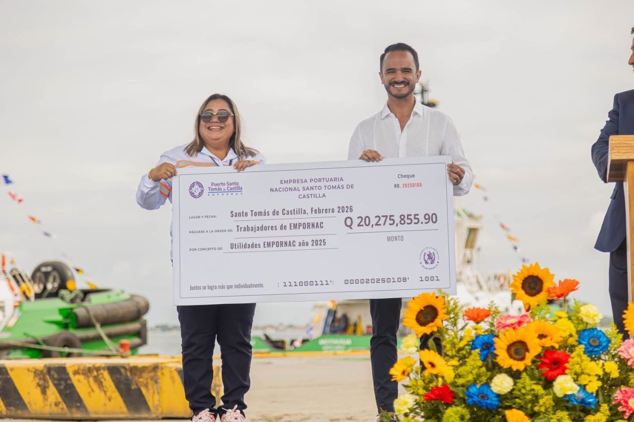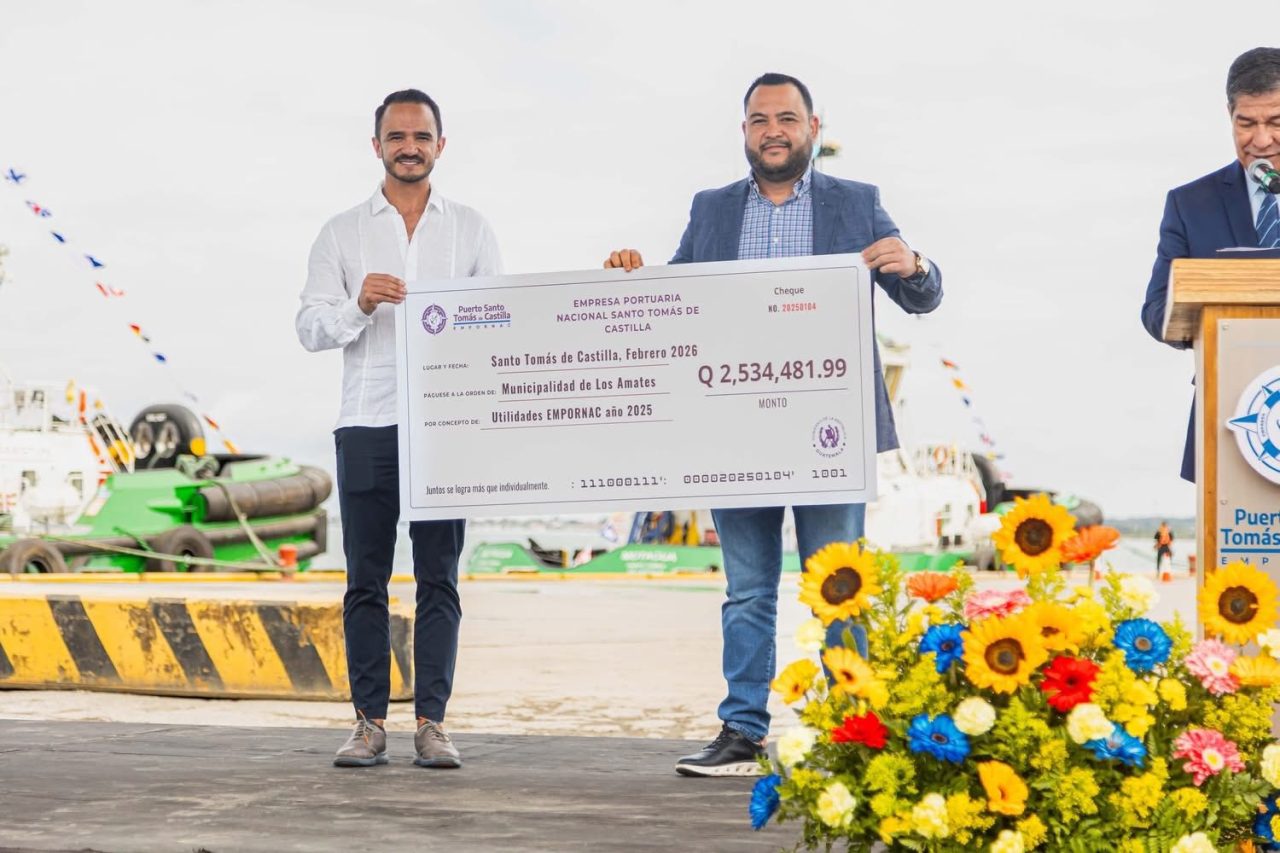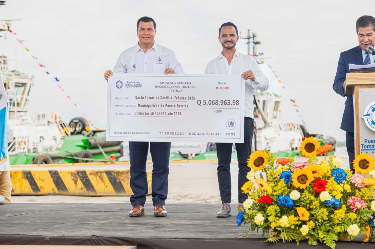En el marco del acto oficial de Entrega de Utilidades 2025, el Presidente de la Junta Directiva de EMPORNAC, José De La Peña, realizó la entrega y distribución de los dividendos correspondientes al ejercicio fiscal 2025, beneficiando a los trabajadores portuarios, al Estado de Guatemala y a las municipalidades del departamento de Izabal.