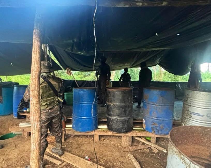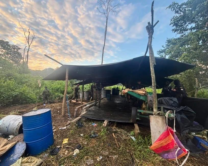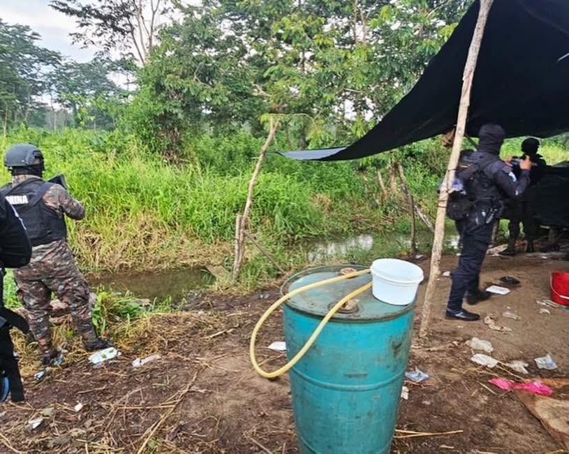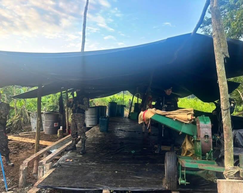 Durante patrullajes de rutina, el Ejército de Guatemala ubicó una instalación improvisada utilizada como narcolaboratorio en el municipio de El Estor, Izabal, dando aviso a las autoridades competentes para los procedimientos legales correspondientes.