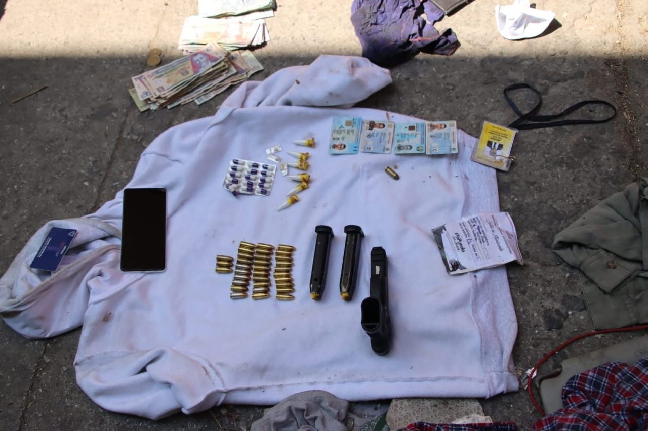 A cinco cuadras, fueron detenidos y tras efectuar una inspección al vehículo, se determinó que llevaban una granada aturdidora de uso exclusivo de las fuerzas de seguridad; un revólver calibre .38 especial, una pistola marca AHSS, una tolva y 22 municiones de diferente calibre; además, 175 colmillos de cocaína. Presuntamente, lo decomisado fue adquirido en el barrio El Gallito, zona 3 con destino a un grupo de narcomenudeo en El Progreso, extremo que se investiga.