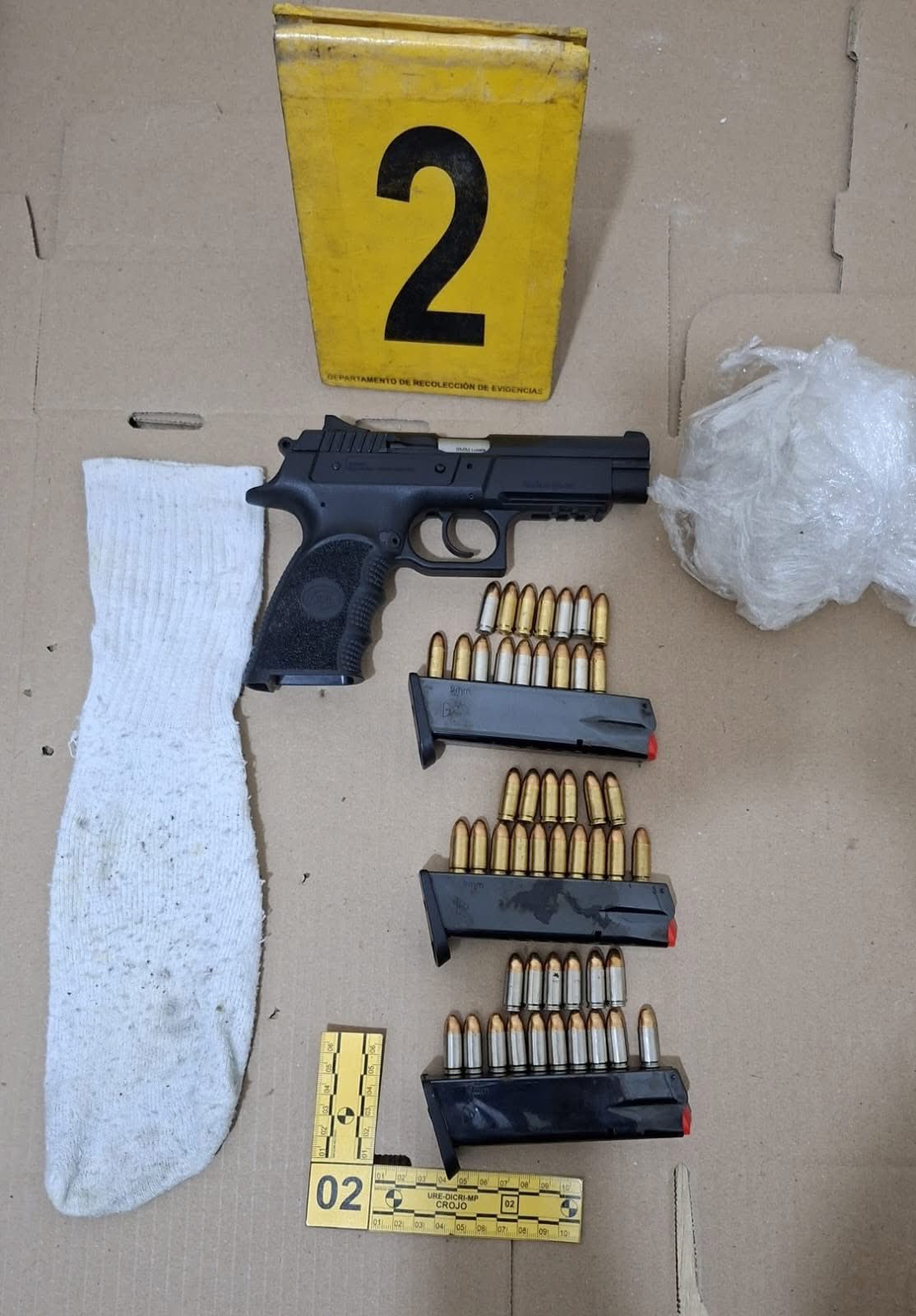 Durante la inspección los policías descubrieron en un agujero en el piso de uno de los dormitorios cuatro pistolas envueltas en nylon, 12 tolvas y 188 municiones. Además, se incautaron dos cajas con 94 municiones adicionales y una tarjeta SIM.