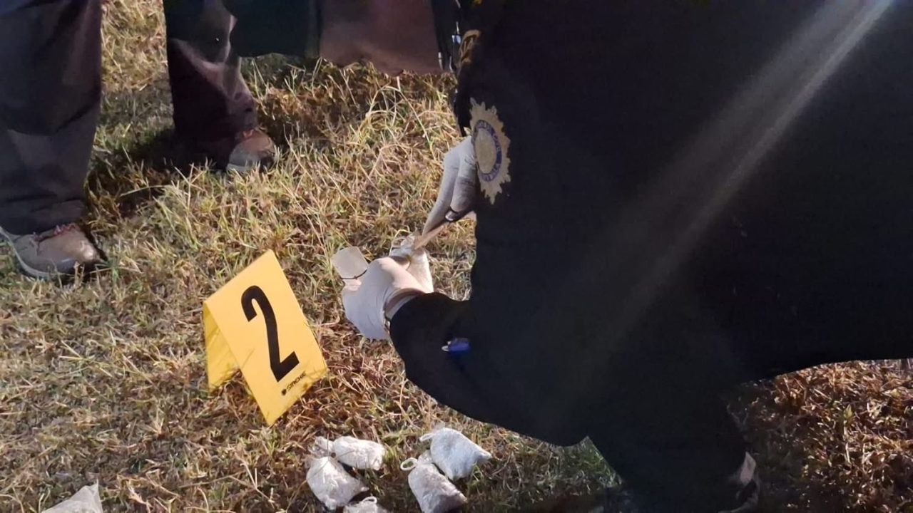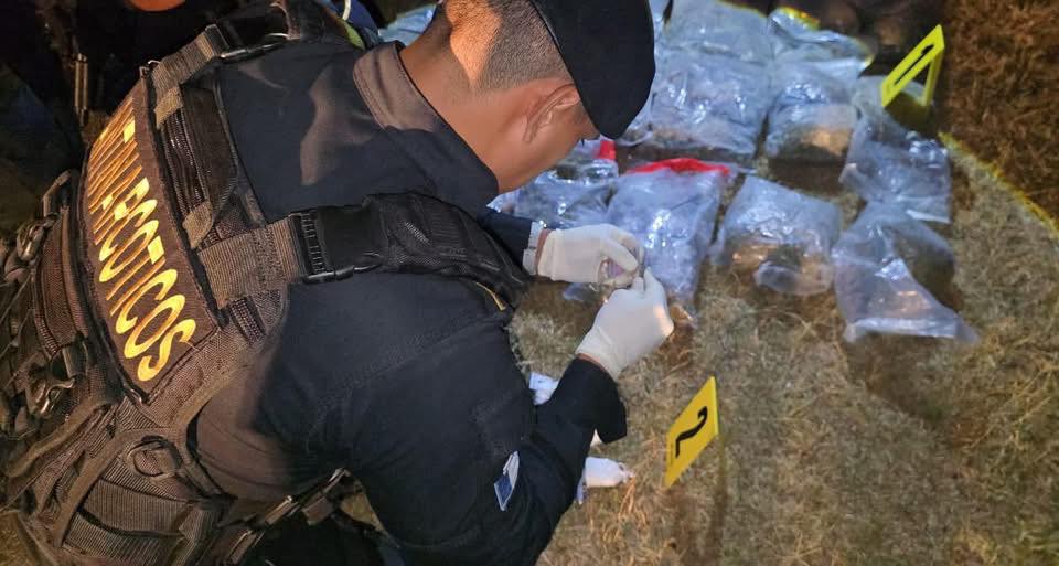 En uno de los recorridos y acciones preventivas que realiza la Policía Nacional Civil PNC y el Ejército de Guatemala en los alrededores de la Granja Modelo de Rehabilitación Canadá, en Escuintla se localizaron 19 bolsas con marihuana, 6 bolsas con cocaína y 4 bolsas con piedras de crack.