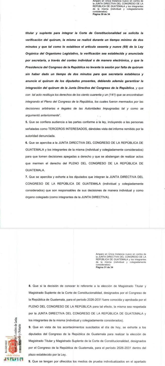 El diputado Carlos López Girón del Partido Valor presento un amparo contra Junta Directiva del Organismo Legislativo para que se garantice la sesión de mañana para elegir magistrados de la Corte de Constitucionalidad CC.