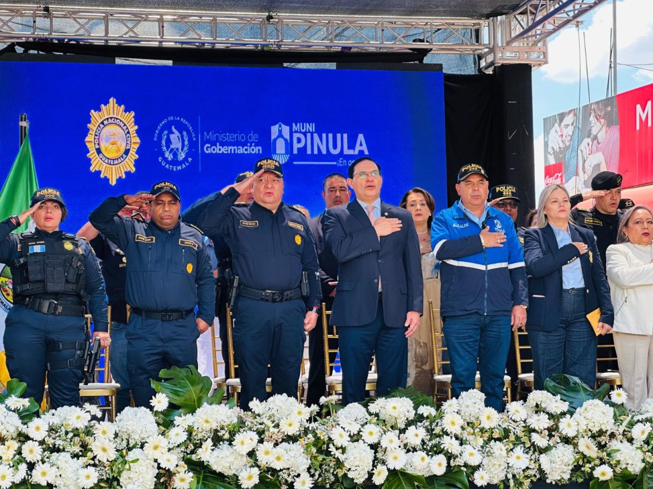 En la actividad participaron el Ministro de Gobernación, Marco Antonio Villeda; el Director General de PNC, David Custodio Boteo; el Gobernador Departamental, Mauricio Bernard y el alcalde de San José Pinula, Johnny Ayala.