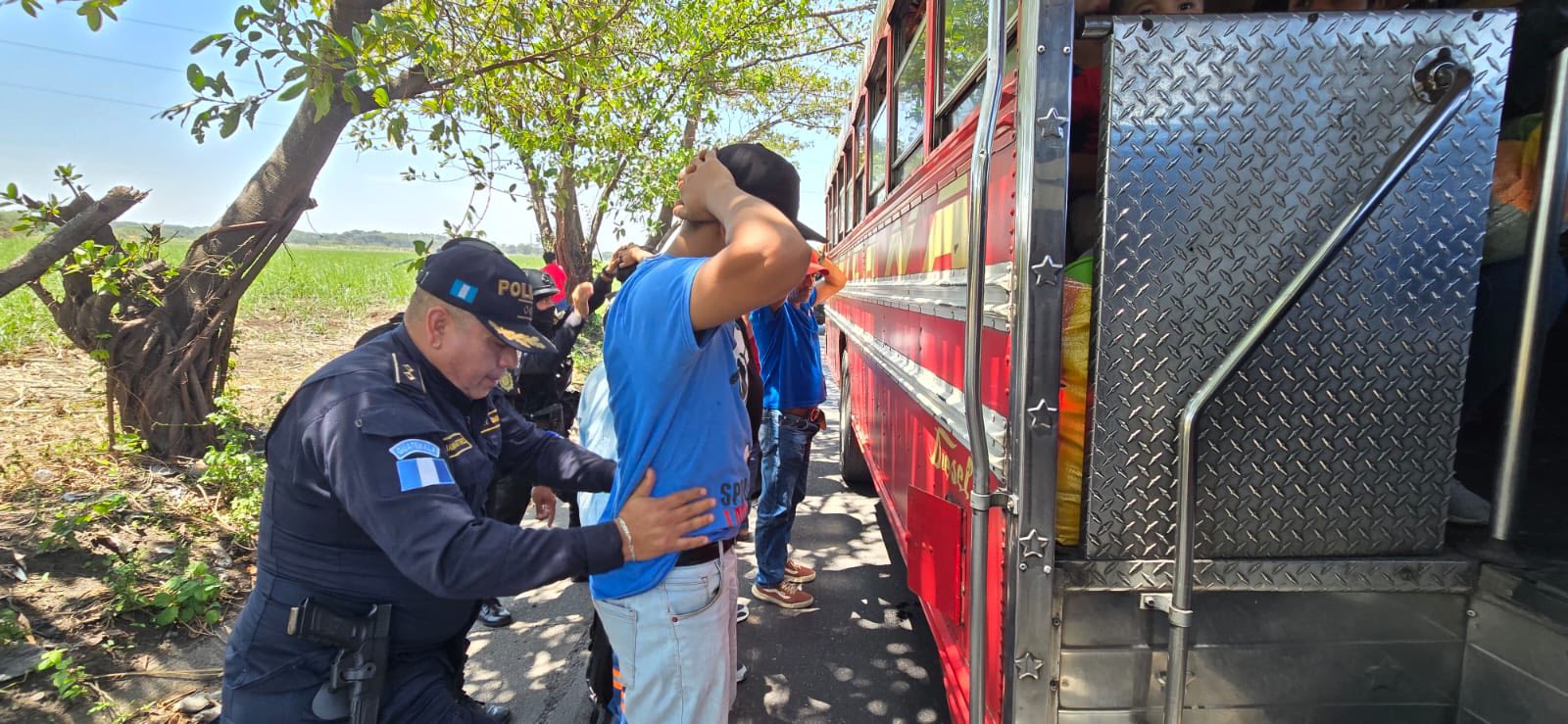 Policías de la comisaria de Escuintla tienen puesto de seguridad en su sector, donde se realiza identificación de personas y vehículos y se prioriza la seguridad a pasajeros del transporte colectivo.
