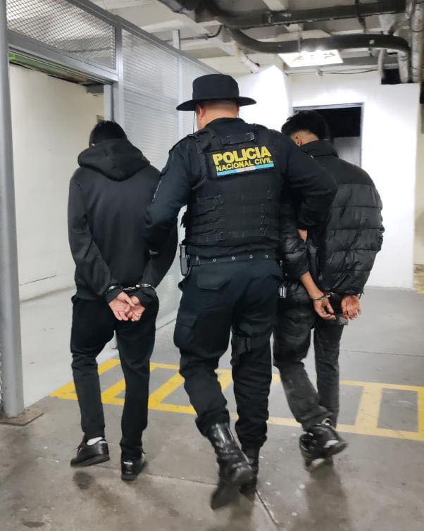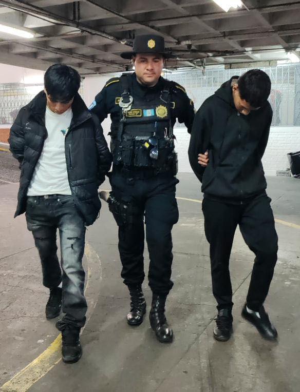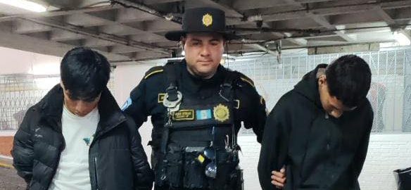 En la calzada Roosevelt , zona 11, frente a Tikal Futura, policías de la comisaría 14 que tenían un puesto fijo de seguridad, capturan a José Antonio Alvarado Mejía, de 19 años y a Dylan Steven Pineda Godínez, de 20 años, atrapados por los agentes cuando conducían una motocicleta, y con arma en mano tocaron la ventanilla del carro de un piloto automovilista, por lo que fueron perseguidos durante media cuadra hasta ser neutralizados.