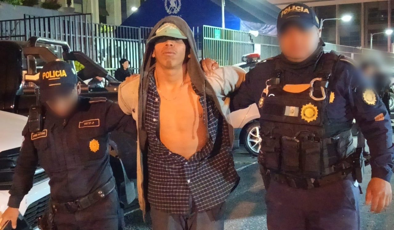 En el río de aguas negras, límite entre zona 6 y zona 18, bajada buganvilias, policías de la comisaría 12 y policías de la SGAIA, capturaron a dos terroristas del barrio 18 y conducen a un menor de 17 años, identificados como Alexander Reyes, de 25 años y Jairon Aristondo, de 20 años, pandilleros del barrio 18.