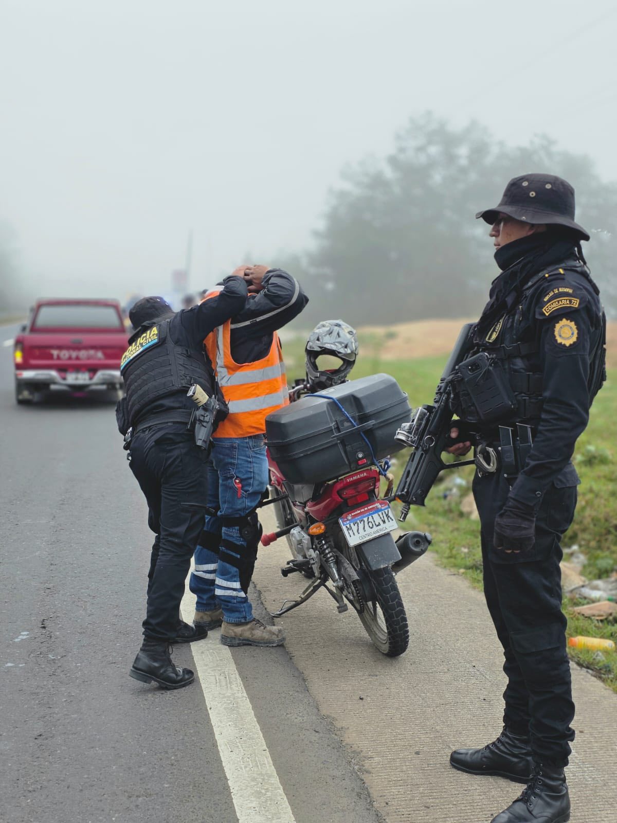 EN SOLOLA…A la altura del kilómetro 118 de la ruta Interamericana, en jurisdicción de Sololá, agentes de la Policia Nacional Civil PNC de la comisaría 72 mantienen operativos desde tempranas horas, realizan inspecciones a conductores y pasajeros de vehículos, motocicletas y buses extraurbanos para fortalecer la seguridad y prevenir hechos delictivos.