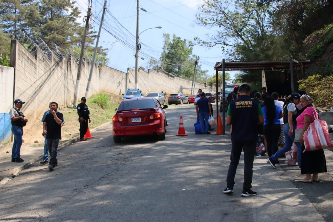 En el ingreso al centro de detención preventiva de la zona 18, Renovación I y Canadá en Escuintla, policías de la comisaría 12, personal de investigación de la DIPANDA y Ejército de Guatemala, realizan registros e identificación a las visitas de este día, con la finalidad de prevenir el ingreso de ilícitos a los recintos carcelarios.